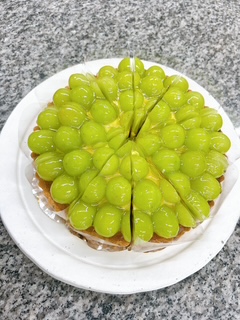 こんま亭人気のサクサクタルトの上に皮ごと食べられる甘みの強いシャインマスカットをたくさんのせたタルトです!