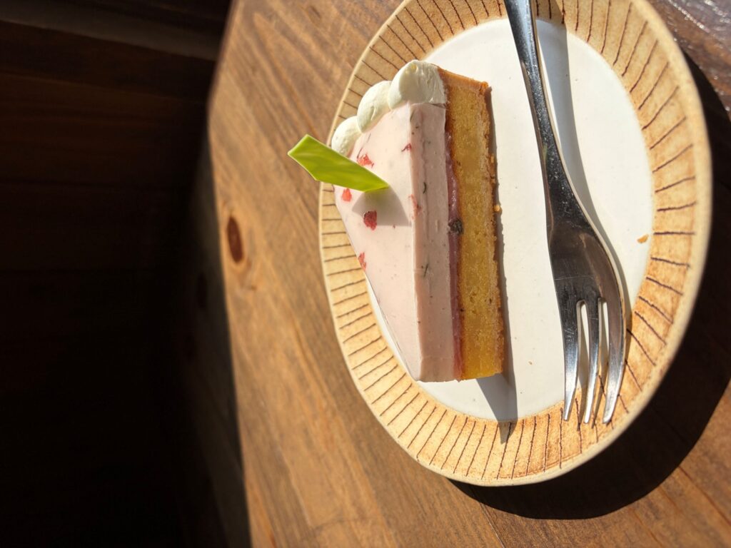 桜のムースにはアクセントとして桜の葉と花の塩漬けが入っております!